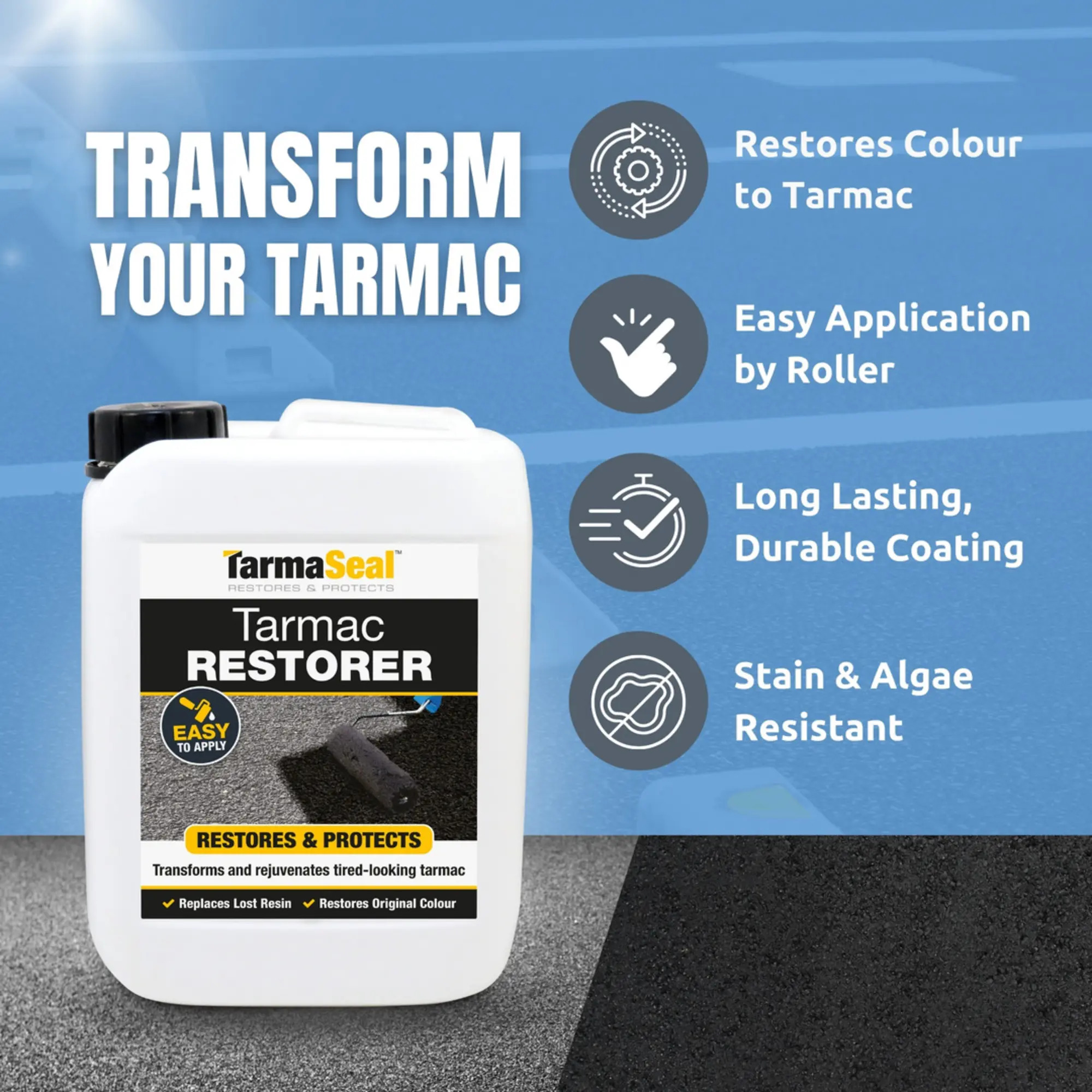 - Reduces Tarmac stone loss and increases the life span of the Tarmac driveway's