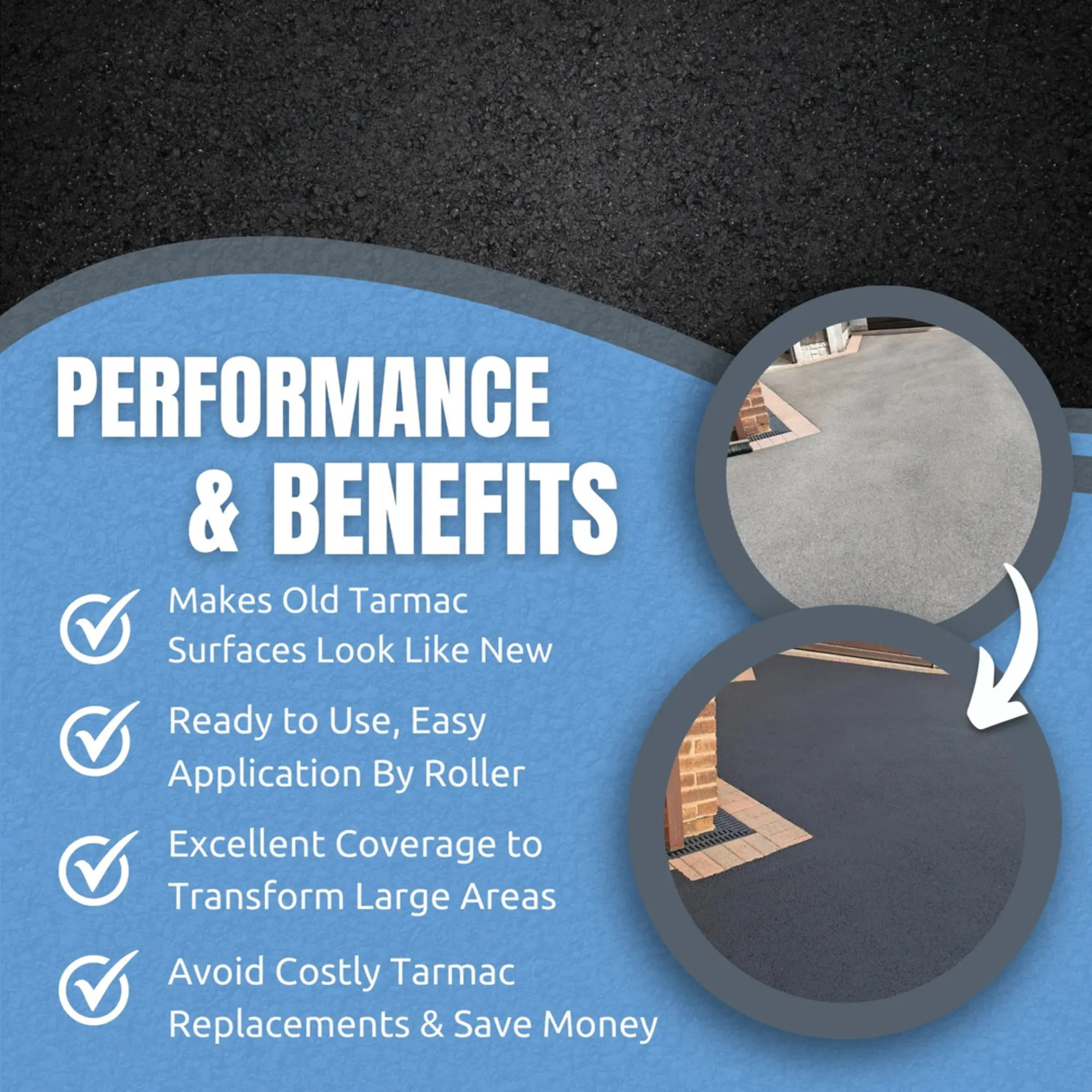 - Makes old tarmac look like new