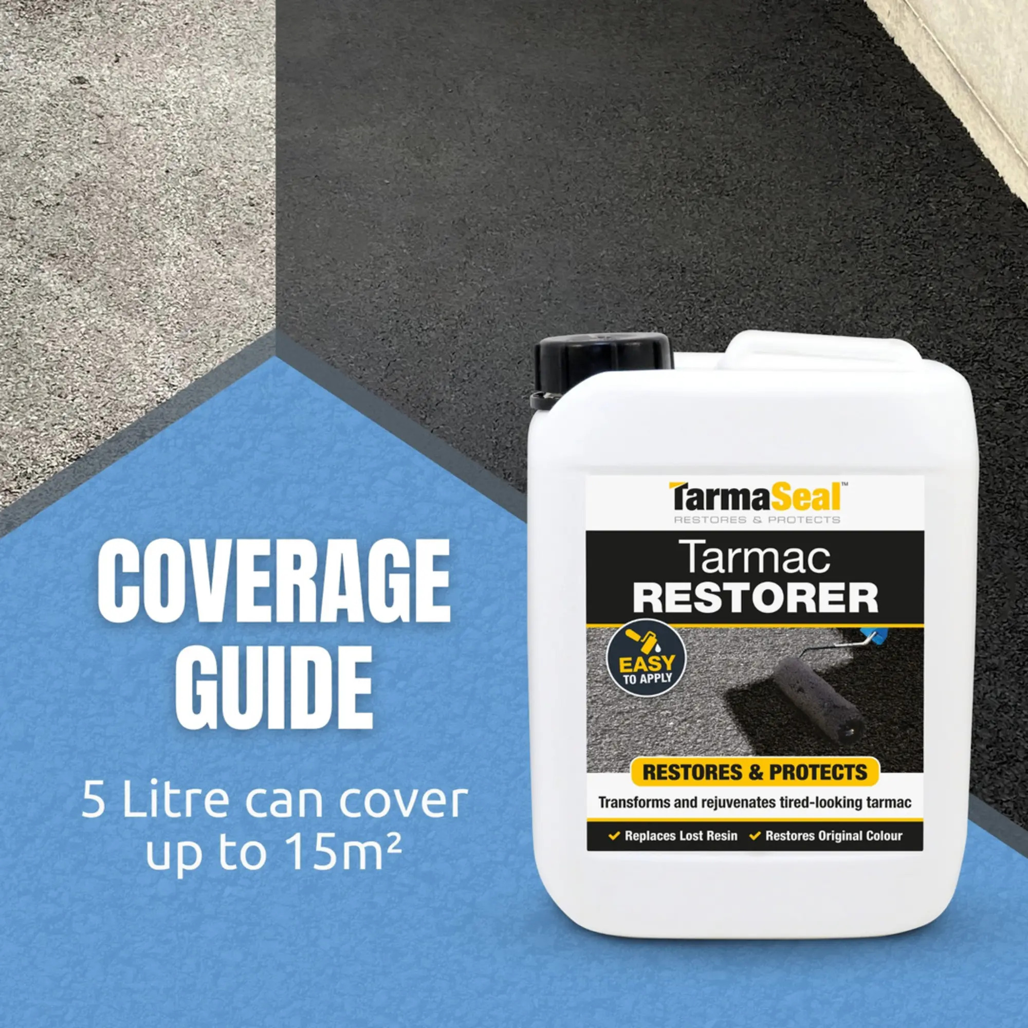 - Waterproofs, re-colours and protects Tarmac