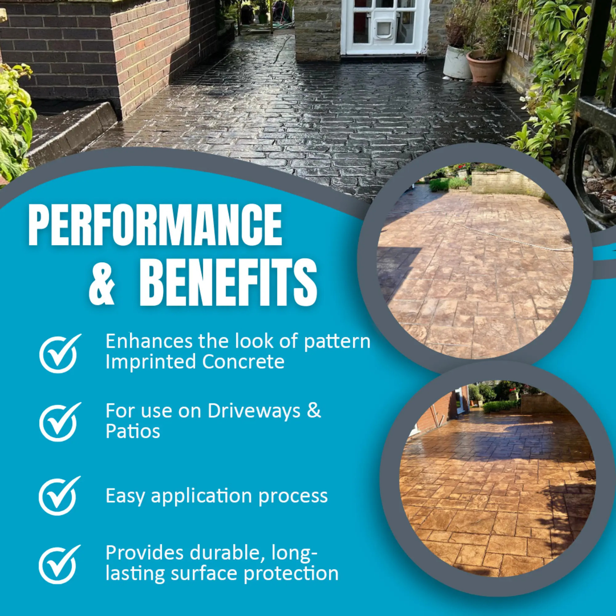 - Seals, protects and enhances the surface of all pattern imprinted concrete.