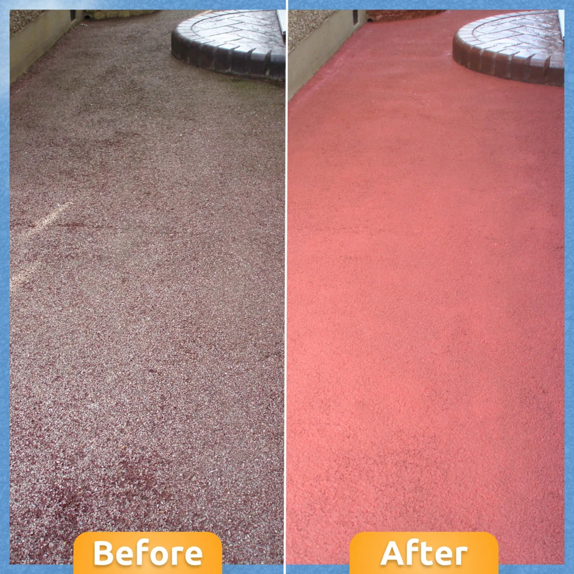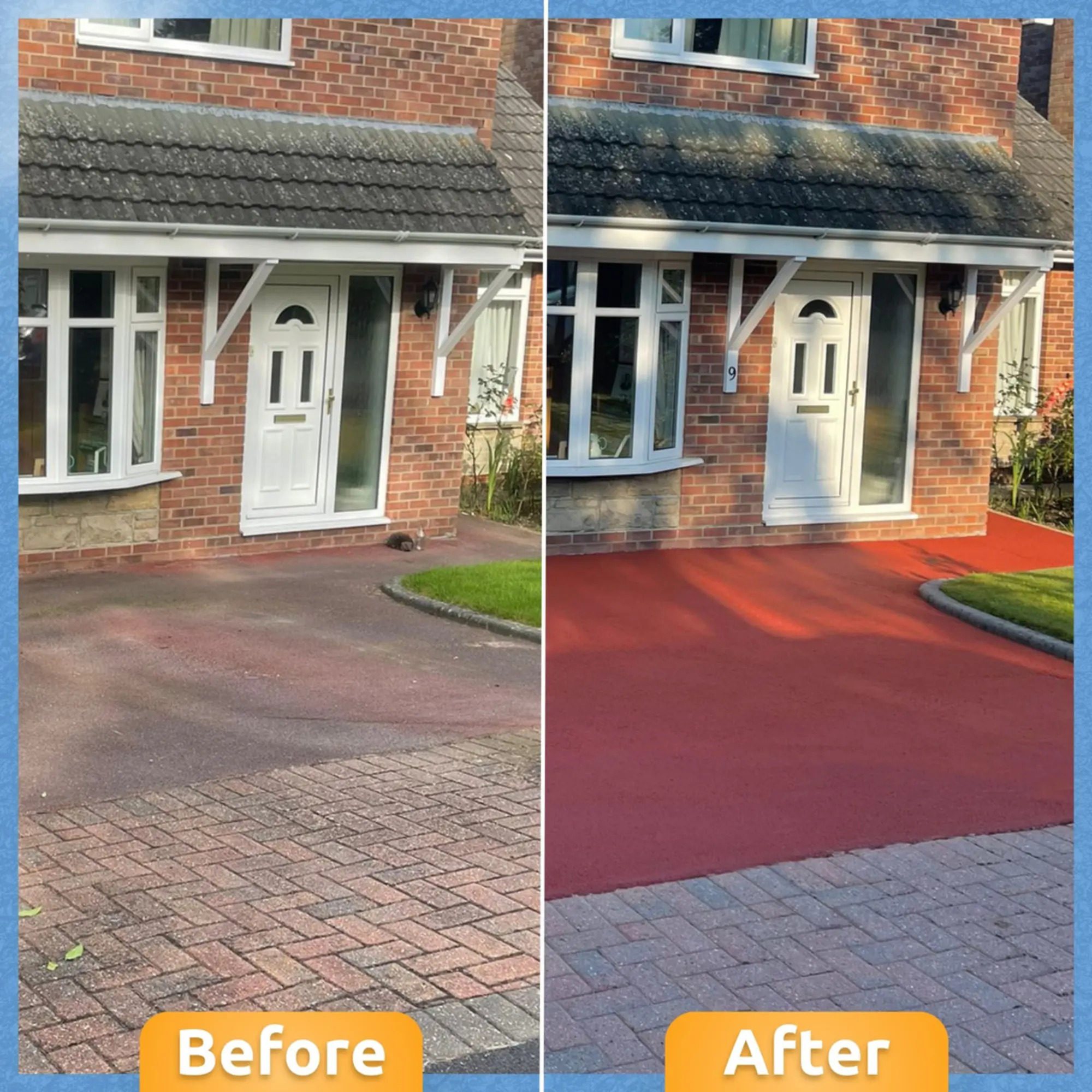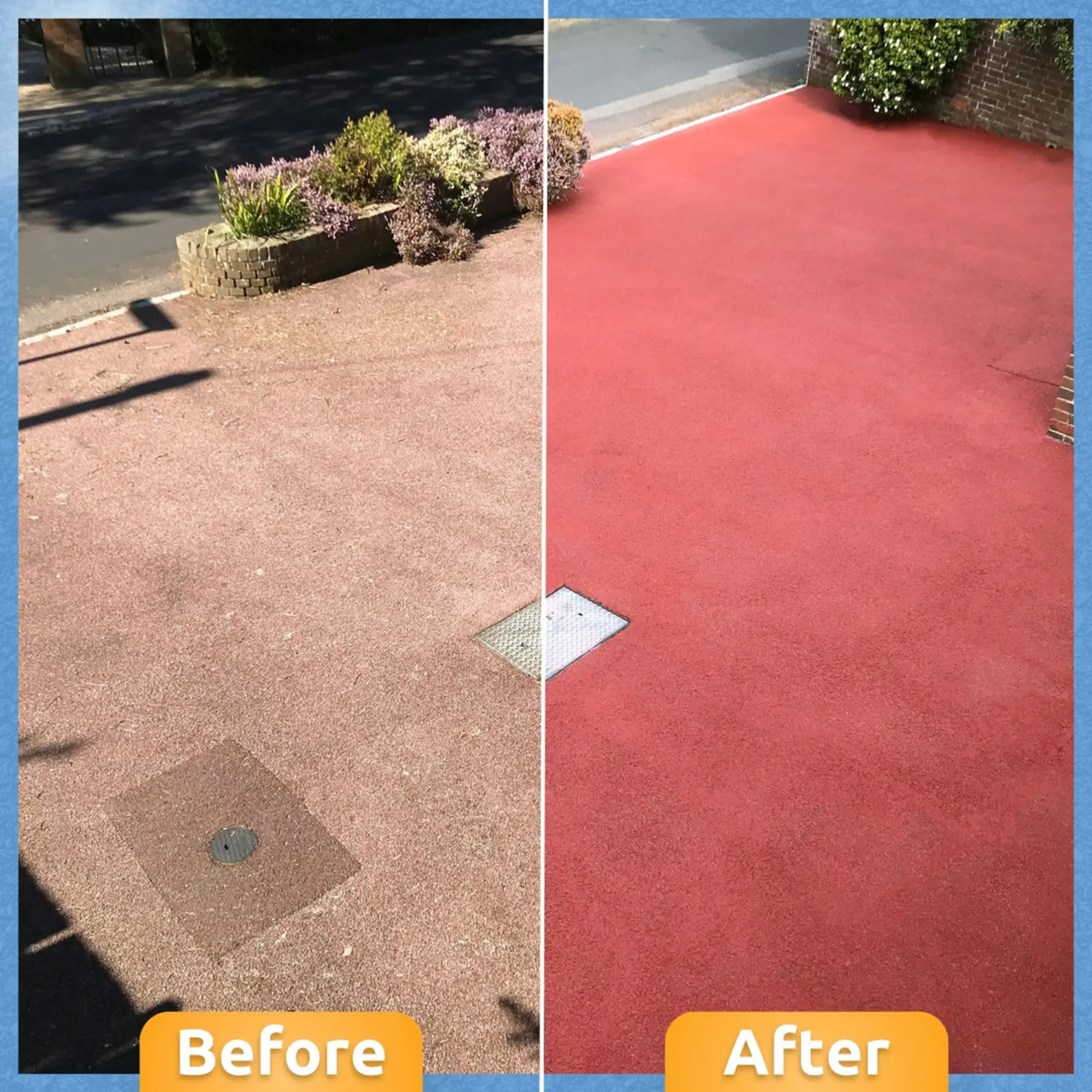 A RED tarmac restorer for driveways, paths, tennis courts and car parks