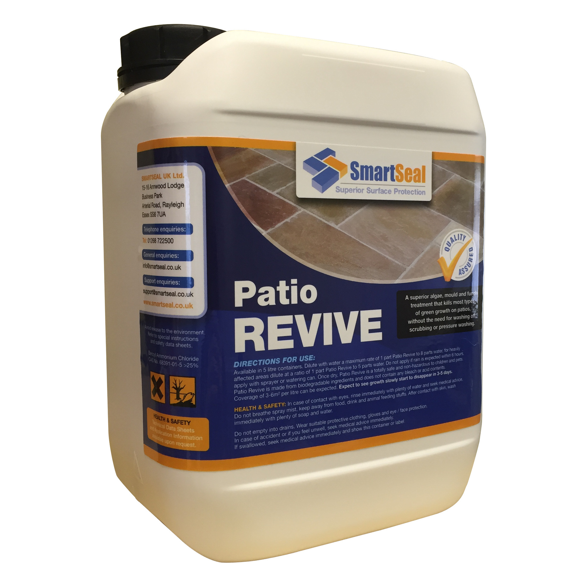 Smartseal 'Patio Revive' is the easy way to keep your patio looking good, without the use of harmful chemicals. Just apply via watering can or sprayer and let nature do the rest. Best applied in the spring and autumn, ideally on a surface already protected by sealer.