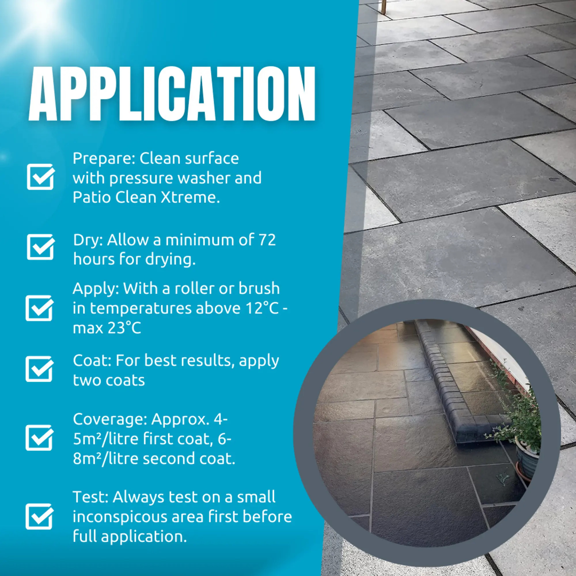 - Clean surface using a pressure washer and/or Patio Clean Xtreme.