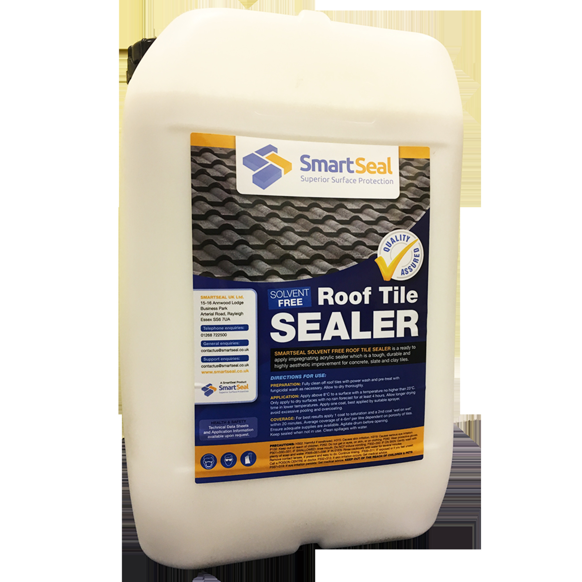 Smartseal Roof Tile Sealer is a impregnating solvent free, breathable sealer suitable for all types of porous roof tile or slate. Application of the sealer creates an excellent water repellent barrier to old, porous or low quality roof tiles.. By helping to keep the roof tiles dry, roofs are slso protected against future contamination from green algae and lichens.